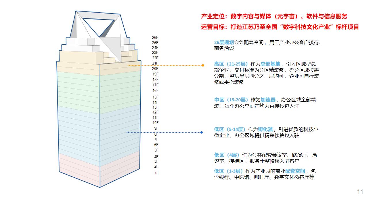 为中小企业办公加速器、21层以上为大中型企业总部基地,形成完整产业生态链